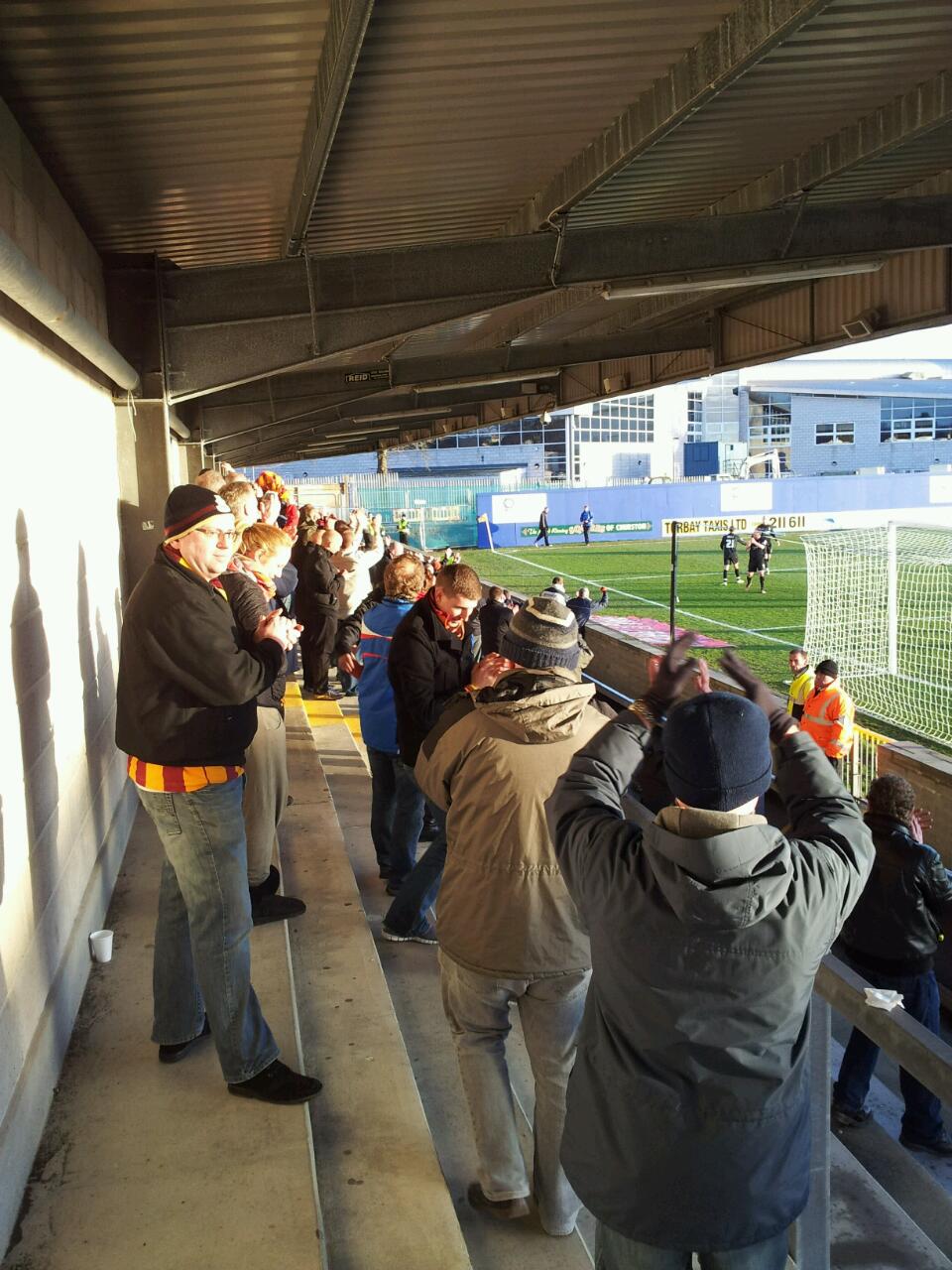 It had turned twelve o’clock so I thought I’d better set off for the match. Being a City exile I only had a couple of hours to travel to get to Plainmoor. However, after a rare visit to Valley Parade on Tuesday night to witness a very poor game played in a very poor atmosphere, on a very, very poor pitch I was wondering why I was bothering.