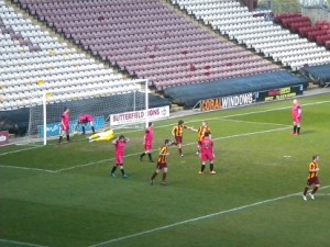 As the ball nestled in the lower tier of the TL Dallas Stand I held my head in my hands. My chance to score the winner at Valley Parade had come and gone! I was happy enough with the way I had struck the ball but it was just a fraction too high. A couple of my team mates told the ref it should have been a corner but he pointed for a goal kick. Seconds later the final whistle blew; it was all over!