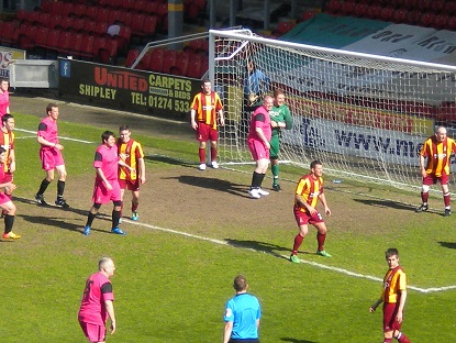 The second half kicked off at a decent pace. I didn’t have much of the ball as the home side mounted a number of attacks at our goal. Following a corner from the left a goalmouth scramble ensued and Jack Sutcliffe equalised for ‘Bradford City’. I was gutted and began to fear that the younger legs of the home side would now see them to victory.