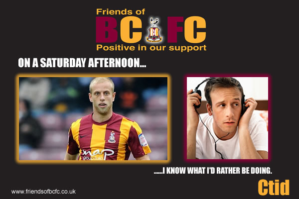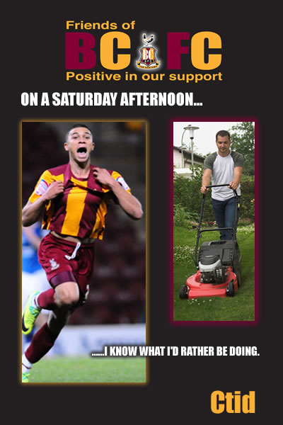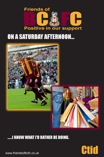 “A FoBCFC Facebook and Twitter push has seen the thought provoking images launched on to the web. It’s not about value, it’s about the opportunity cost or in simple terms what you’d be doing if you didn’t purchase a season ticket. There are some very positive noises coming out of Valley Parade emphasised by the Andrew Davies signing – I for one couldn’t think of missing out on next season when we finally see ‘our’ club back amongst the league pacesetters.”