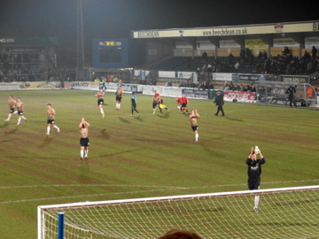On 63 minutes, excellent play by Thompson saw him beat his man deep on the right, cross for Reid to put in a shot which was blocked but fell to Thompson 10 yards out on the right. He smashed an excellent shot against the bar (déjà vu) and you just wondered whether it really was to be our night. A header flashed past the City post, Dunne outfought Atkinson and shot from distance. But Wycombe stayed predictable and City stayed comfortable.