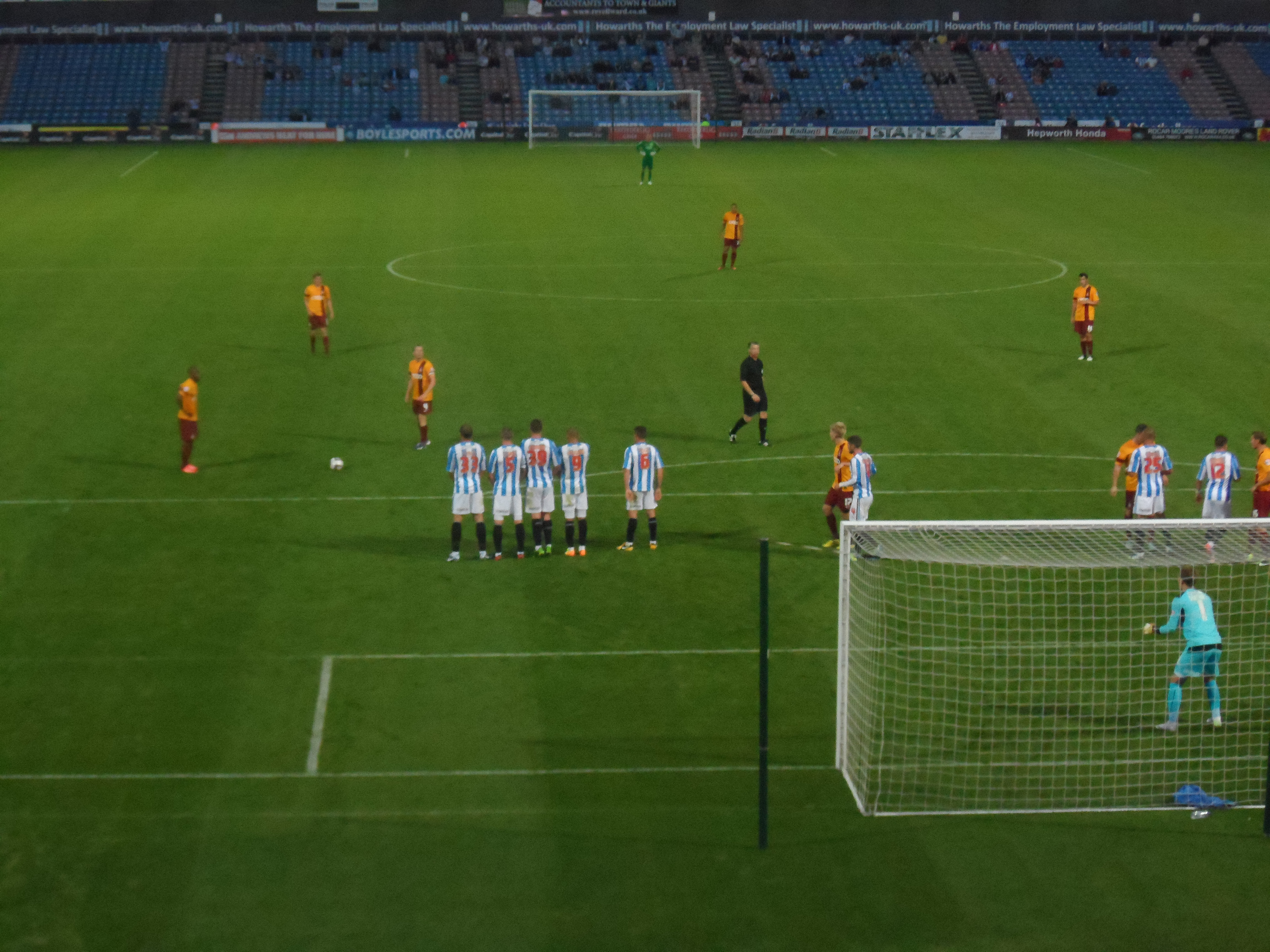 A couple of worryingly free headers from corners was about as close as the Terriers came to opening the scoring, and things began to settle down with City slowly coming into proceedings. Kyel Reid was probably our main threat as he went on a couple of jinking runs which were only ended by either a cynical foul or by his all too often decision to go it alone rather than play a teammate in on the overlap.