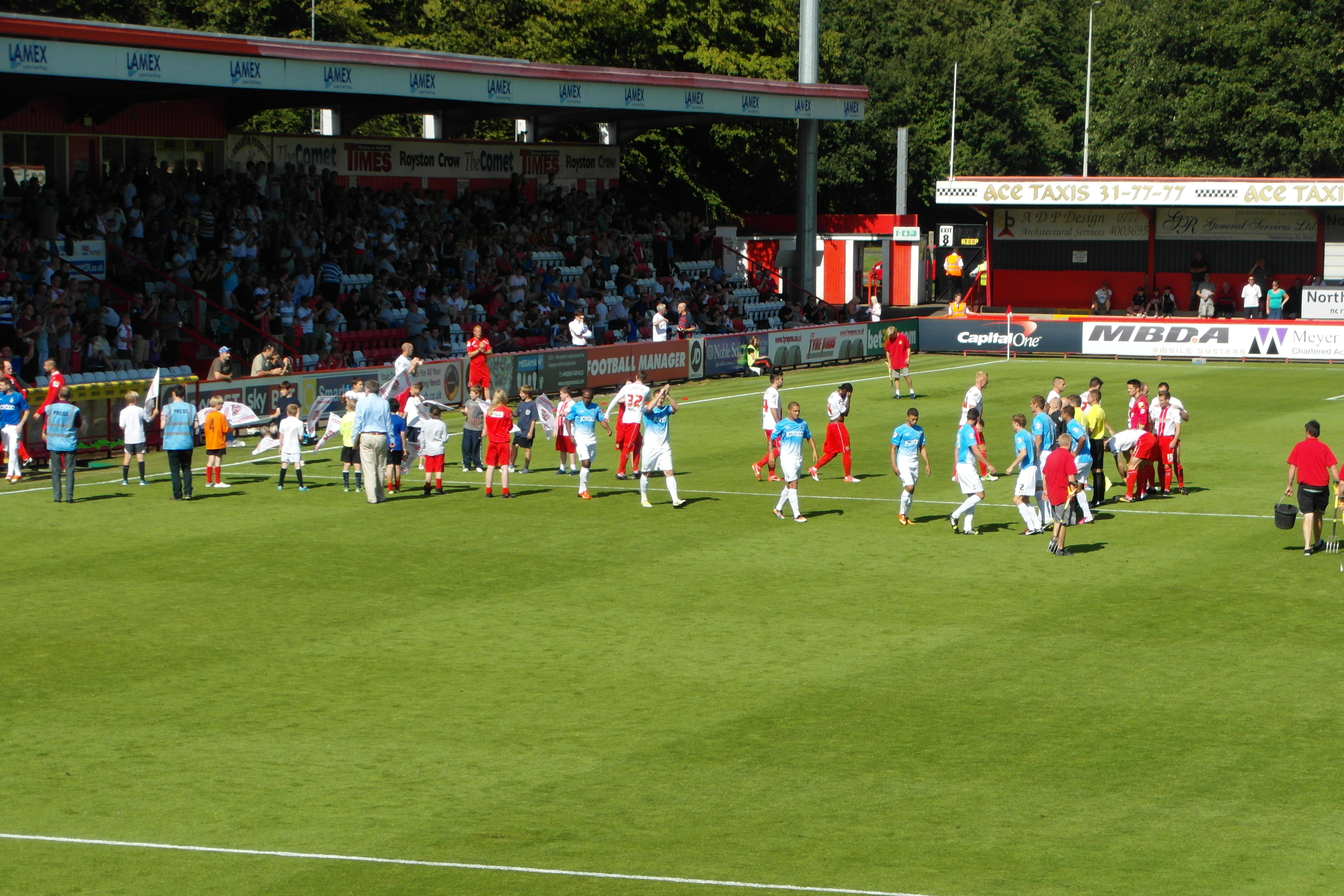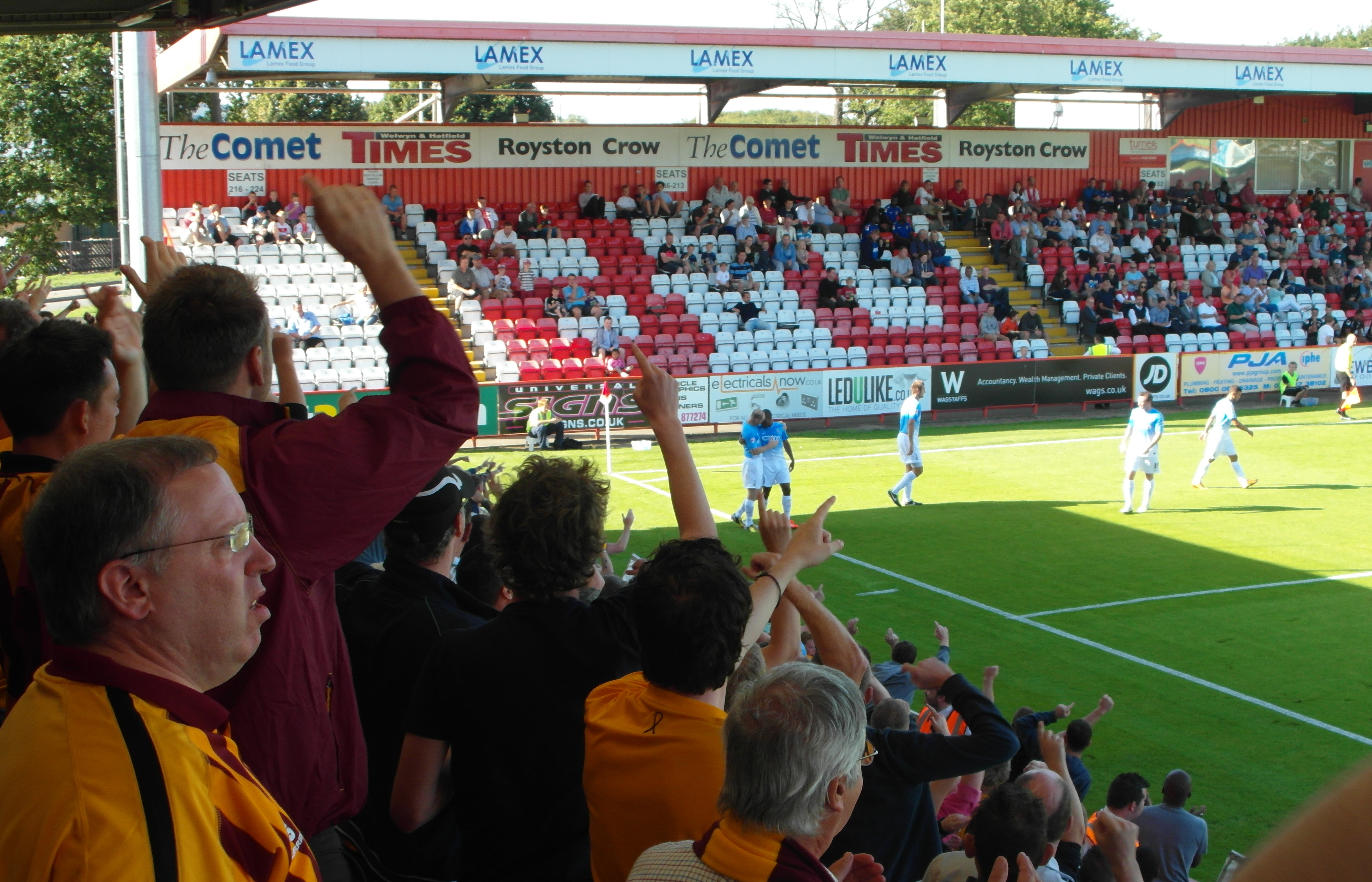 That wouldn’t be the ground though. To be fair the stand that the ‘faithful’ were in was great, but the ground really has a Conference/fourth tier look to it. That’s not to criticise Stevenage who, under the chairmanship of Phil Wallace, have made remarkable strides considering their formation as recently as 1976. Indeed, they have progressed remarkably through the leagues only occasionally stuttering (once under Peter Taylor) and won the FA Trophy twice, once winning at Wembley in front of 53,000. We know how that feels.