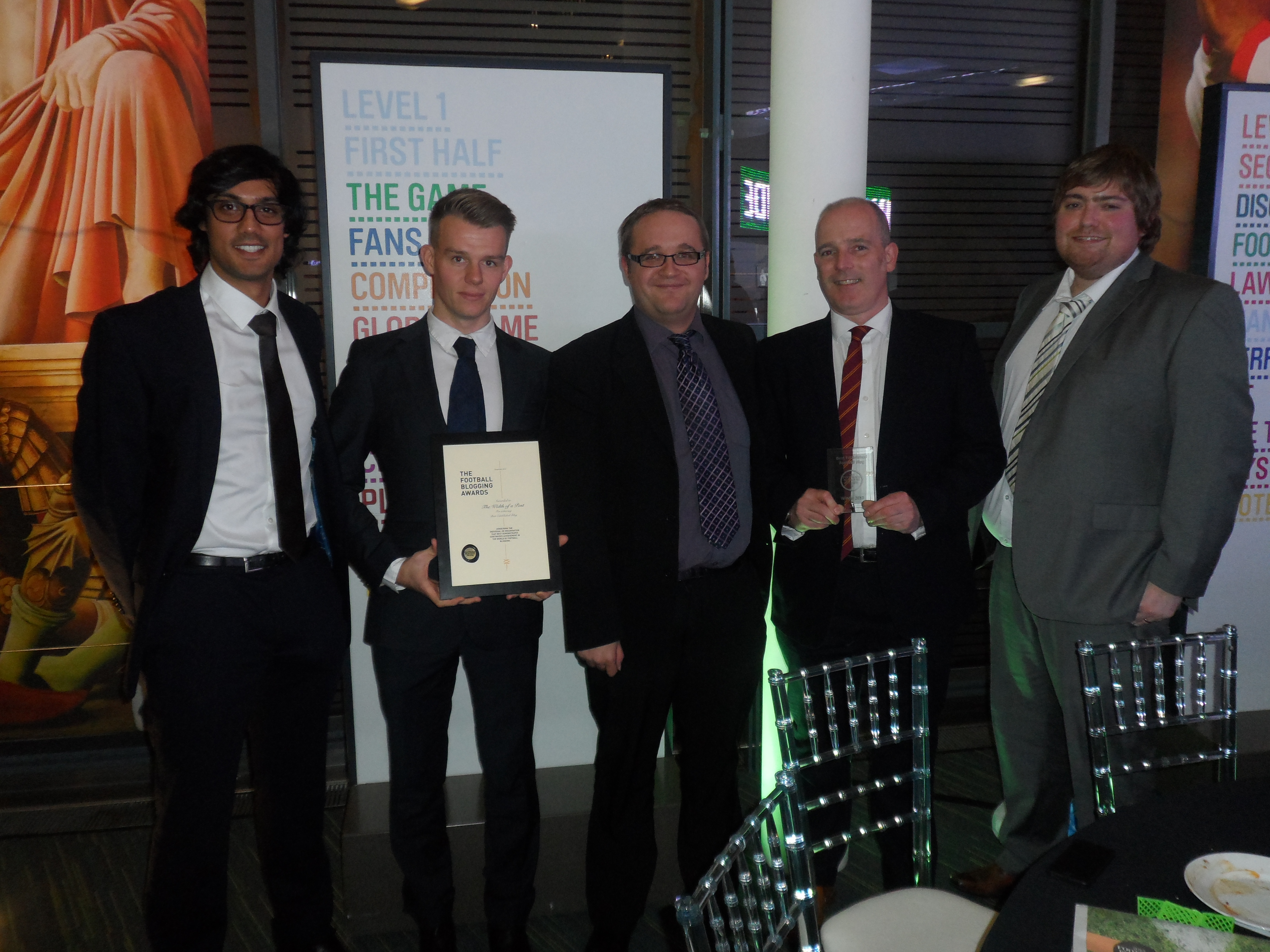 I’m incredibly proud to announce that Width of a Post has won the award of Best Established Football Blog at the 2013 Football Blogging Awards. We beat off some stiff competition from some excellent blogs (Manchester United, Arsenal, Crystal Palace, Peterborough and, ahem, Leeds United), and were also shortlisted (but didn’t win) for Best Club Blog.