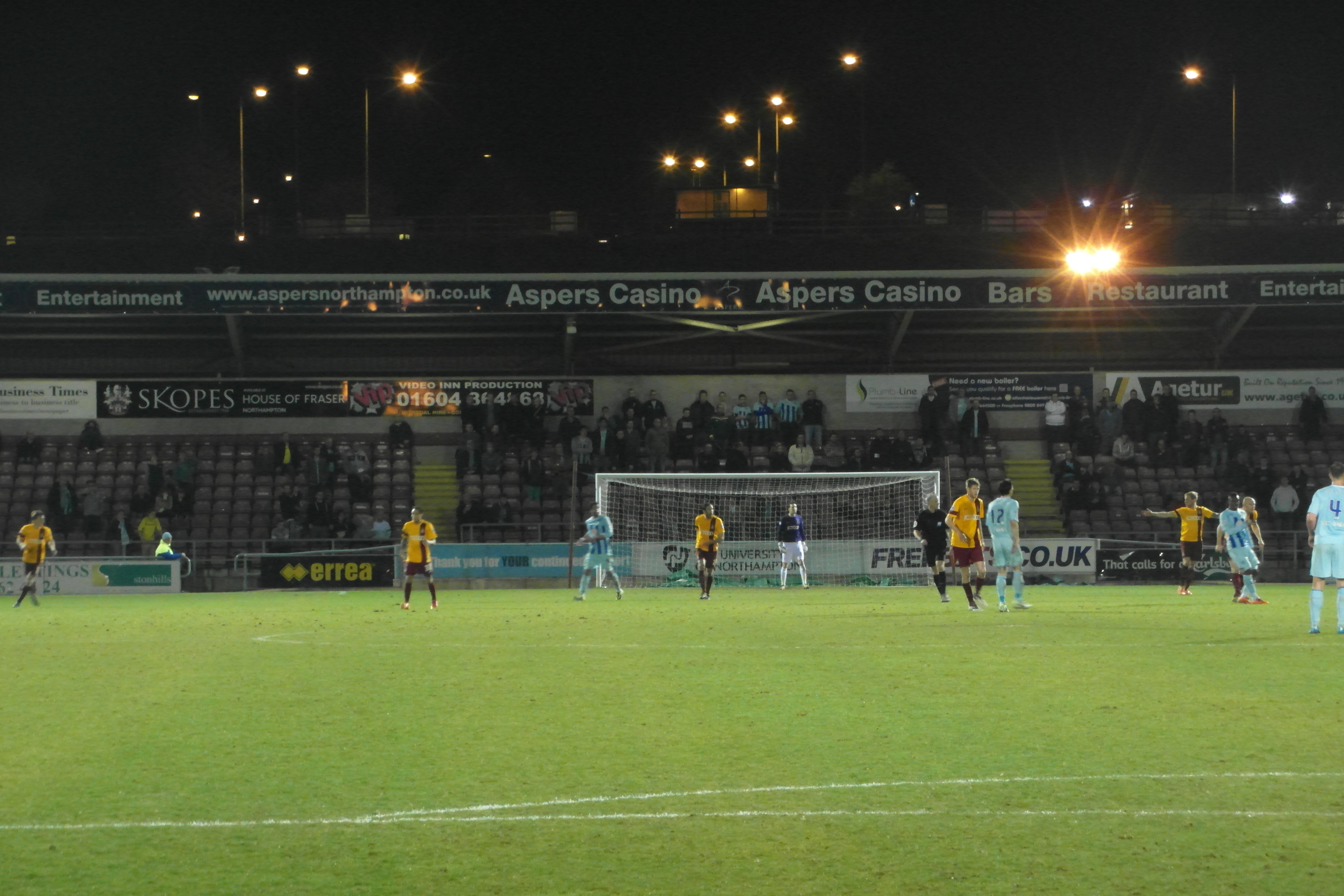 Unsurprisingly, given the boycott of home games by a large number of Coventry fans, the atmosphere was non-existent (though the openness of Sixfields doesn’t help in the first place). The club’s attempts to rouse the home support by playing ELO’s Mr. Blue Sky fell not so much on deaf ears as absent ones. Perhaps Coventry’s finest band’s “Ghost Town” would have been a more appropriate song for the occasion. The attendance was 1,673, with 327 City fans. It must be soul destroying for Coventry’s supporters and it is hard to see how they can achieve any real momentum whilst playing away from Coventry.