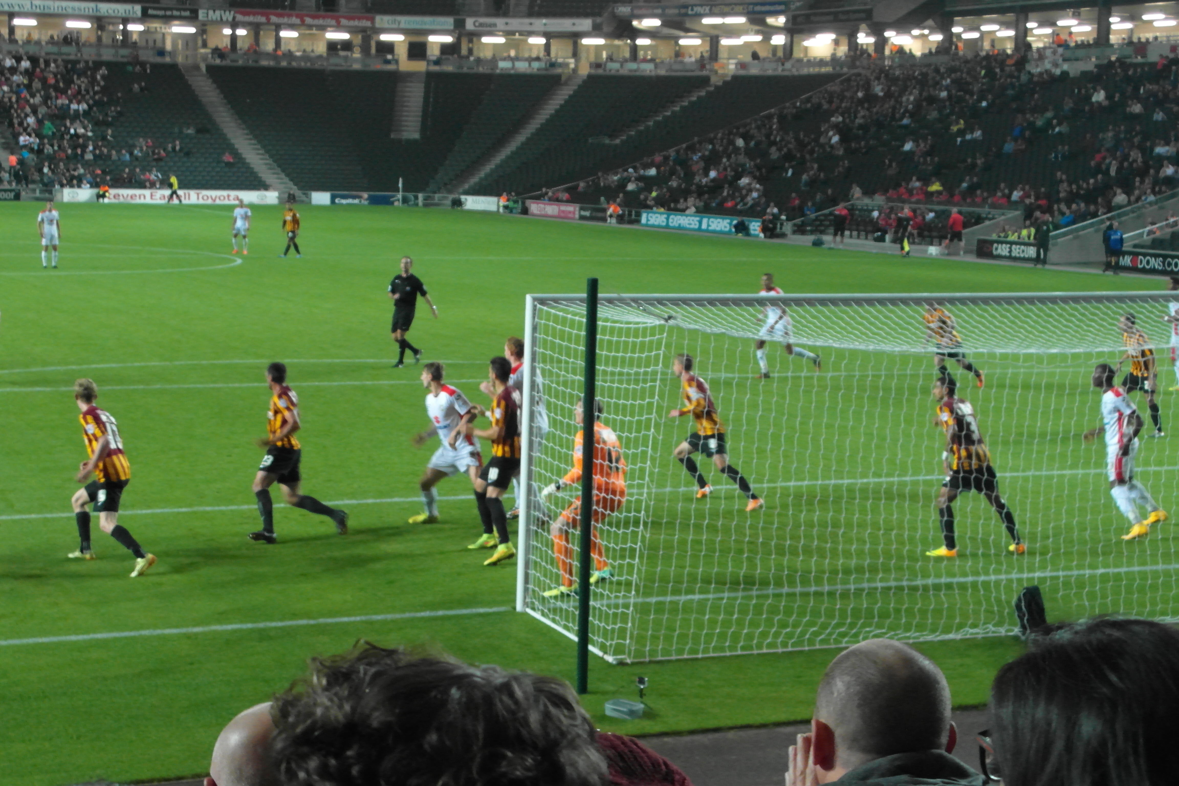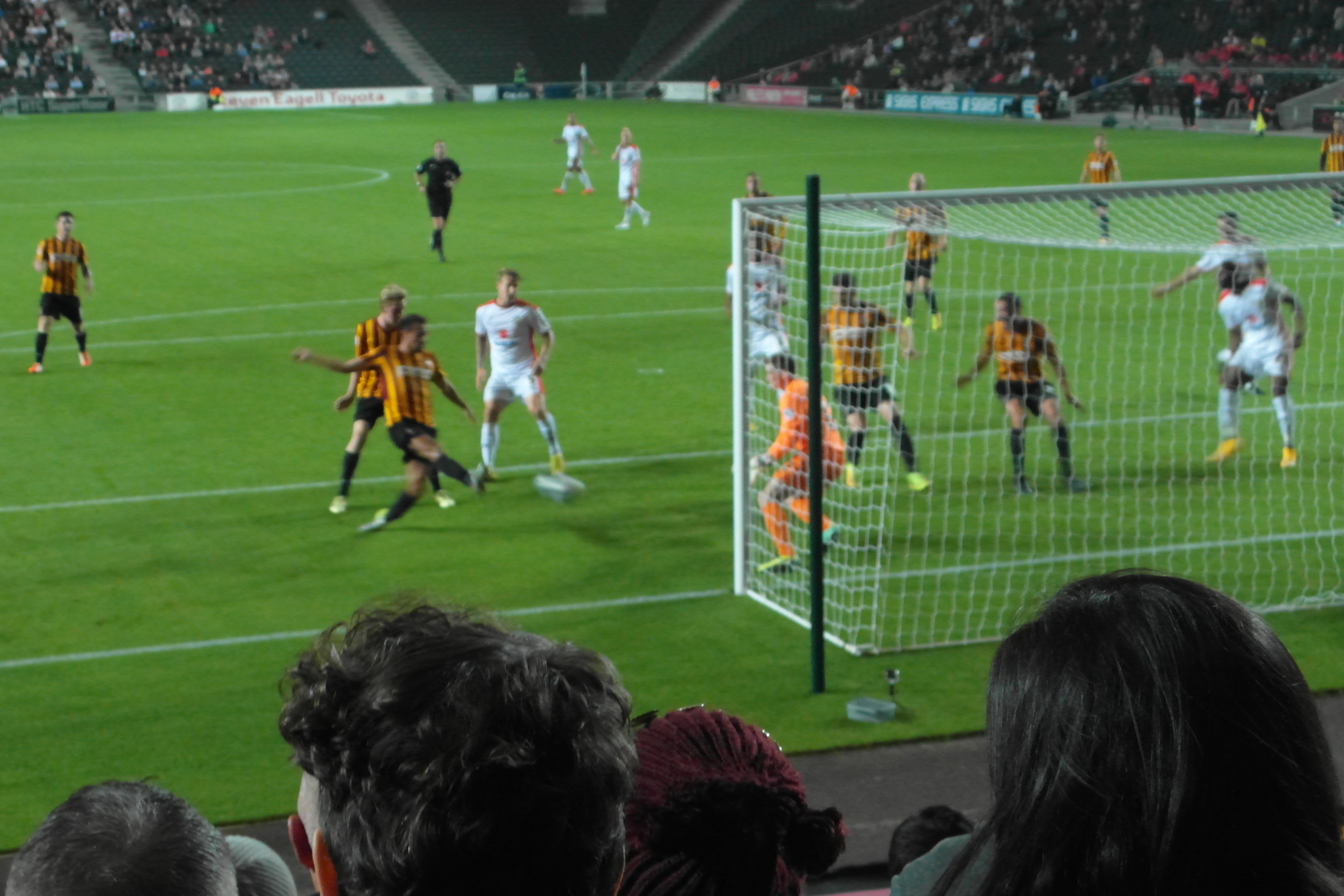 City again struggled to settle as MK full back Spence, impressive on the overlap, shot narrowly wide. But we then had a short, strong spell as Morais, fed on the counter by Clarke, crossed firmly but straight at keeper Martin. Morais then earned a corner after a good Knott pass. McArdle, not tightly marked, seemed to have a clear opportunity to connect with the corner … but he missed out.