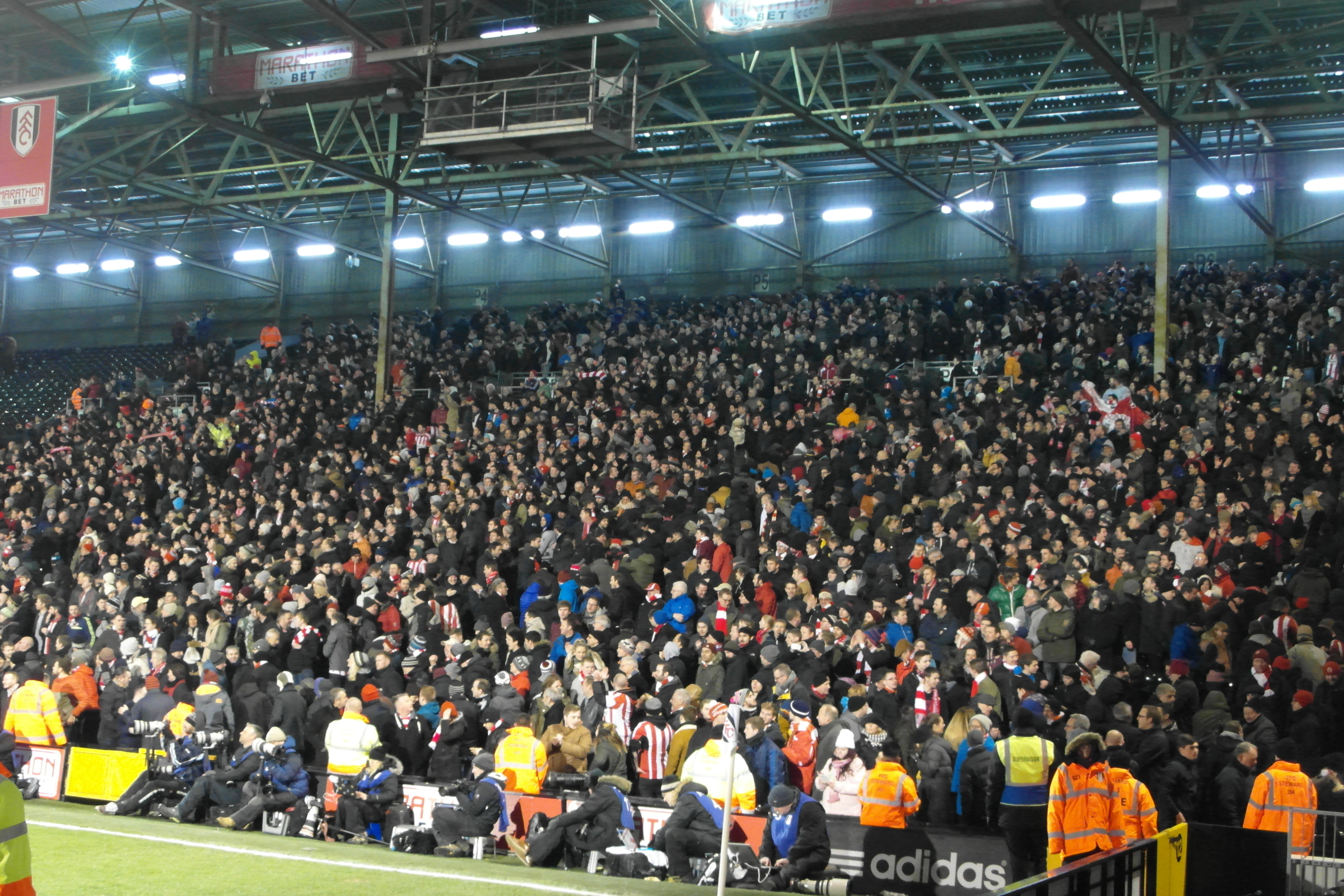 The second half started with Sunderland pushing forward again, Alvarez always to the fore. On 56 minutes a strange thing happened. All of the Fulham fans around me stood up and got excited. I’m still not sure why, but it was a rare moment. The Sunderland fans continued to impress. Having travelled 280 miles, 1-0 down, mediocre opposition, on a cold Tuesday night, ‘sing your hearts out for the lads’ they sang.