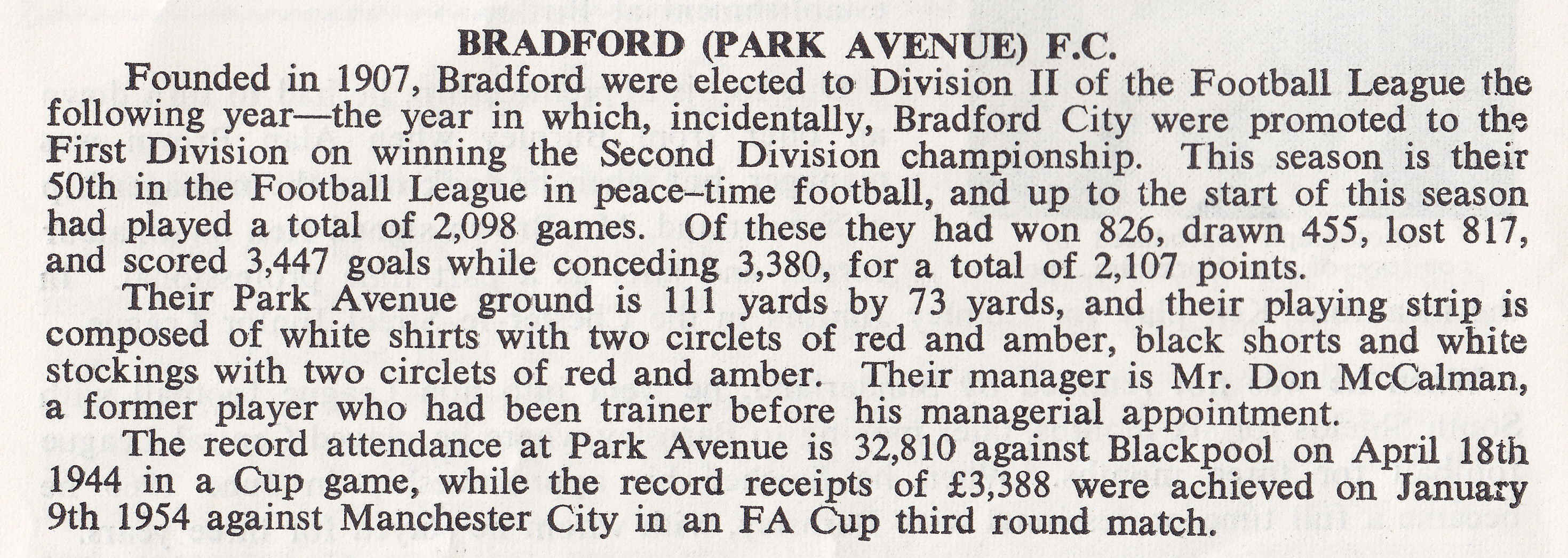 The fact that Bradford (PA) is out of the Football League is irrelevant, the identity of our club has and always will be Bradford City. Put simply, when you refer to a football club, ‘Bradford’ is Bradford (PA) and not BCAFC. For good measure, note that we have always been known as Bradford City AFC – as distinct from FC which was traditionally associated with rugby.
