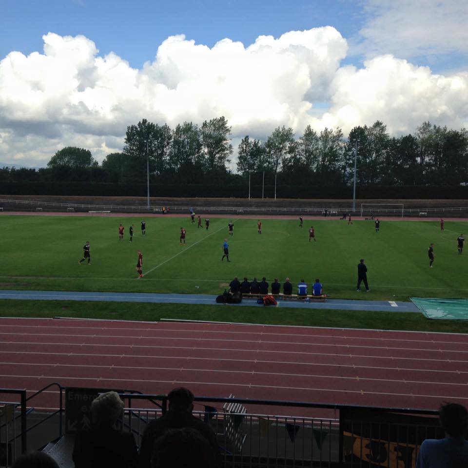 Grangemouth Stadium was itself a fairly curious venue for football, with entrance to the stand being via what appeared to be a leisure centre cafe. A running track around a pitch is never conducive to watching football; however the ground still seemed to be preferable to the unlamented Don Valley Stadium.