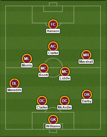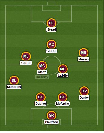 In that respect, the diamond failed, and after Parkinson gave up on Mclean, the 4-4-1-1 made a reappearance, and led to an excellent run of form. Billy Clarke played the playmaker role, and linked well with Jon Stead up front, while Filipe Morais played as the attacking wide man on the right and Yeates, on the left, drifted in, being overlapped by Meredith.