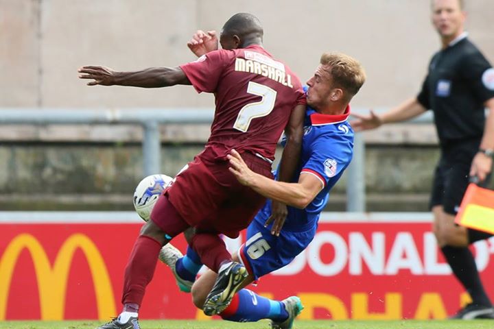 The Oldham team surrounded referee Andy Haines to cry foul over Hanson’s role in the goal. Haines wasn’t going to change his mind, but he was clearly affected by the complaints, proceeding to give almost every subsequent first half decision to those in blue.