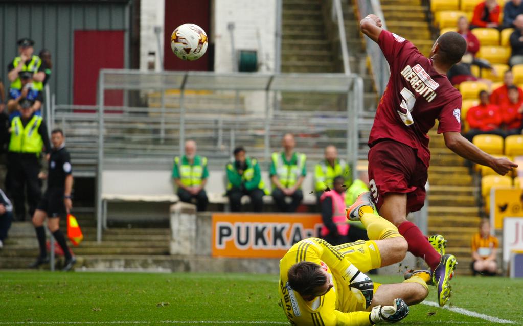 With Devante Cole and Mark Marshall working as hard as anyone, the tone was set. Former City trialist Mark Howard made a good early save from a dangerous Evans free kick whipped into the box, but on the half hour Meredith was first to a ball that had spun free in the area following a loose header by David Edgar, with the City man lifting it over the keeper and into the net. It was a first goal in nearly three years for Meredith and a sign of how he can still offer more to City’s attack. He deserved this moment as he built on a terrific start to the campaign.