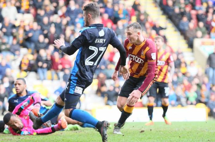 Step forward Charlie Wyke. Bradford City’s most expensive signing since the Premier League turned this game on its head. Whisper it quietly but the January capture from Carlisle was on his longest goal drought since October. Three games had passed without his name appearing on the scoresheet. And though he had battled manfully and hit the post, the 24-year-old spent much of the afternoon struggling to escape his marker and looked set for another blank.