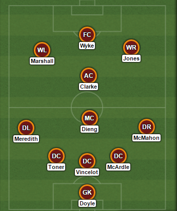 This season, when the team has played a midfield four, the balance has been different. Both wide players (Marshall and usually Law) are asked to attack, and one of the central midfielders (often Dieng, but Cullen towards the start of the season and against Wimbledon) is tasked with getting into the box when attacking, with just one being primarily defensive. In the defence as well, both full backs are asked to get forward, with Meredith getting even more freedom down the left due to Law drifting inside, and the switch from Darby to McMahon giving us greater attacking threat on the right. The net result is that we create a lot more chances.