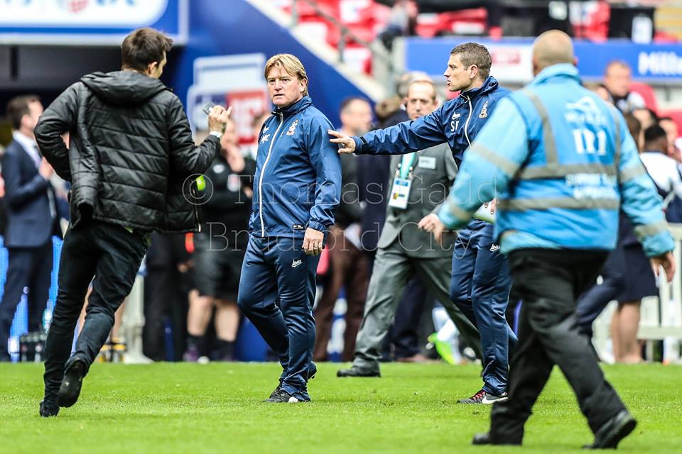 The short-term issue was caused by poor stewarding and policing, therefore the fault of Wembley and the EFL/FA.