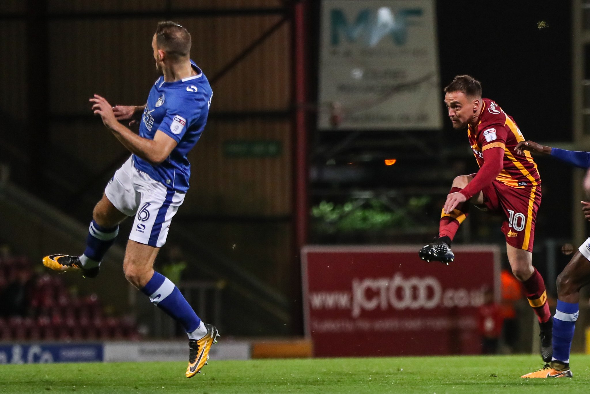 Oldham were never going to roll over. They rocked up at Valley Parade with four wins on the bounce that included Saturday’s late win over the pre-season title favourites, Blackburn Rovers, and were loudly backed by an outstanding travelling support. Midway through the first half, an incisive Oldham attacking move left Eion Doyle clear on goal and he finished smartly. Oldham might still be in a lowly position, but with a streetwise front two of Eion Doyle and Craig Davies they will surely keep climbing the table.
