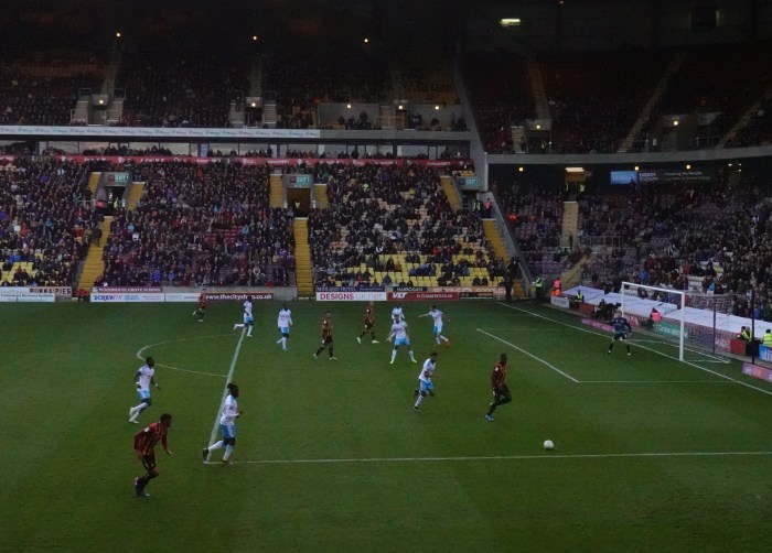 The second 45 minutes initially began in the same manner as the first. City got back on the front foot. And in front of the Kop, the local boy Danny Devine – on at half time for the injured Pritchard – struck a shot from distance that deflected into the net for 2-0. It was a huge confidence fillip for Devine, who has been falling down the pecking order of late. With Pritchard joining Matty Palmer on the sidelines, there is suddenly a first team opening again for Devine.