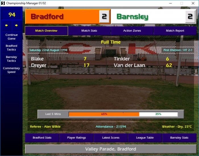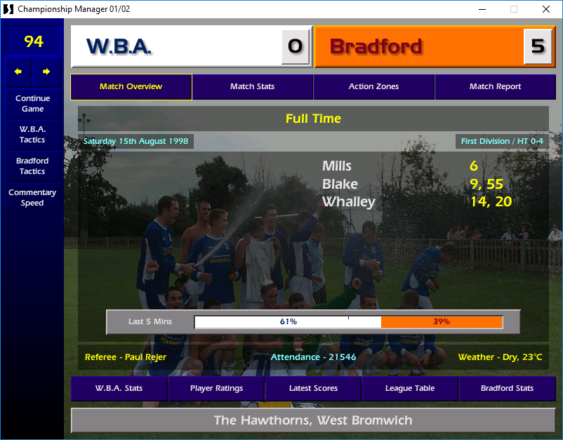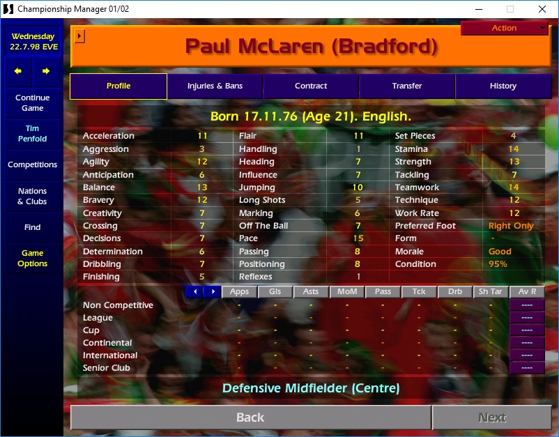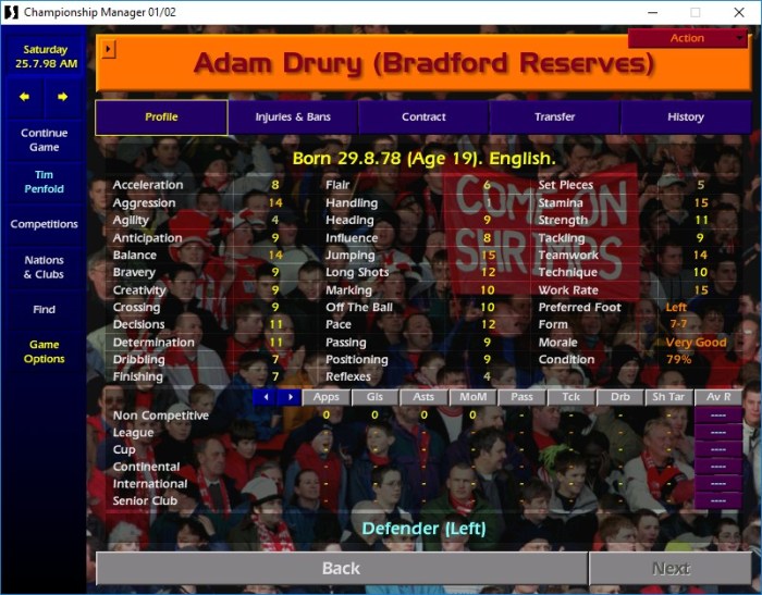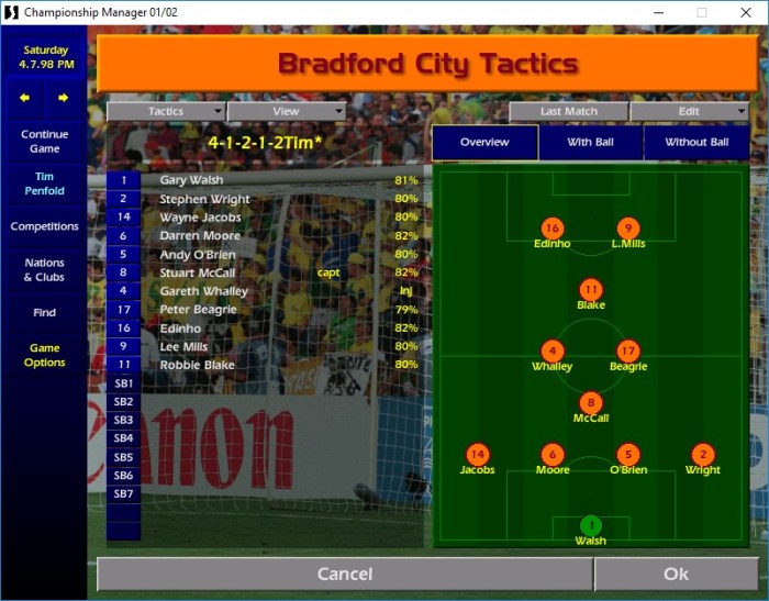 A few technical points on this – I’m using Championship Manager 01-02, but running a version that takes both the database and the year back to 1998. This is available on https://www.champman0102.co.uk/.