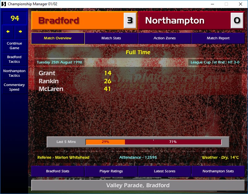 So we’ve gone back in time to 1998-99. Bradford City are establishing themselves as a team to watch outside the top flight. Geoffrey Richmond’s leadership, combined with some good managerial choices, has taken them up one division and now they’ve spent big on a push for the top flight.