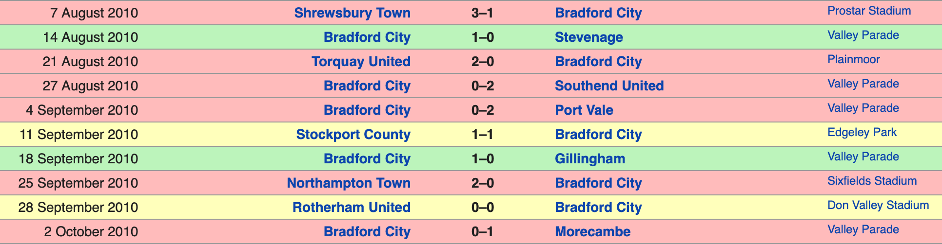 The turn of the decade in 2010 saw the Bantams languishing at the foot of the League Two table under former manager Peter Taylor. Before the somewhat recent famous successes against Chelsea, Northampton at Wembley and the unforgettable 2013 League Cup run, City went into a match against lowly Stockport County with relegation to the Conference an all-to-real threat.
