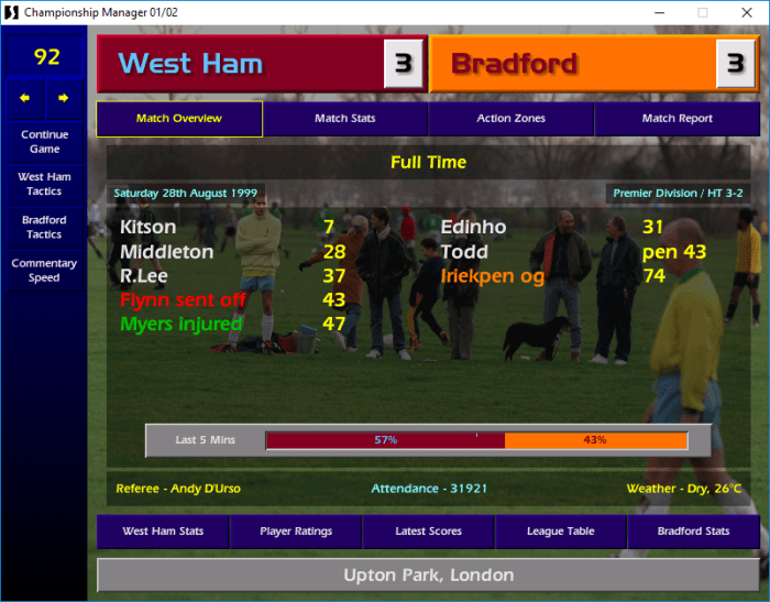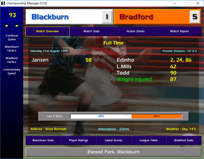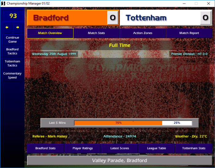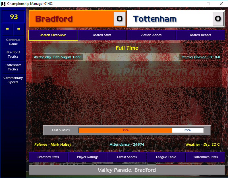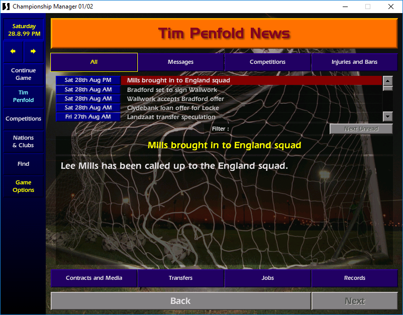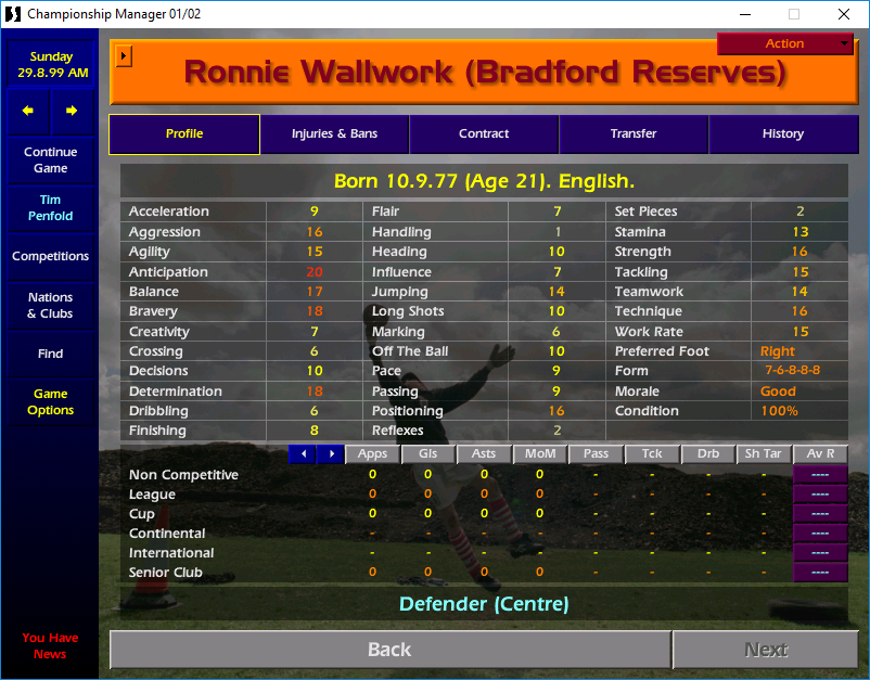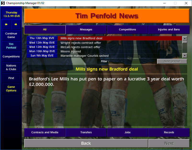 Meanwhile, my Bradford City side are preparing for life in the top flight after sweeping all before them in the First Division last season. I’m lining up transfer targets, but I’m limited to signing players and staff who have played for (or at the very least been on the books of) City in real life.