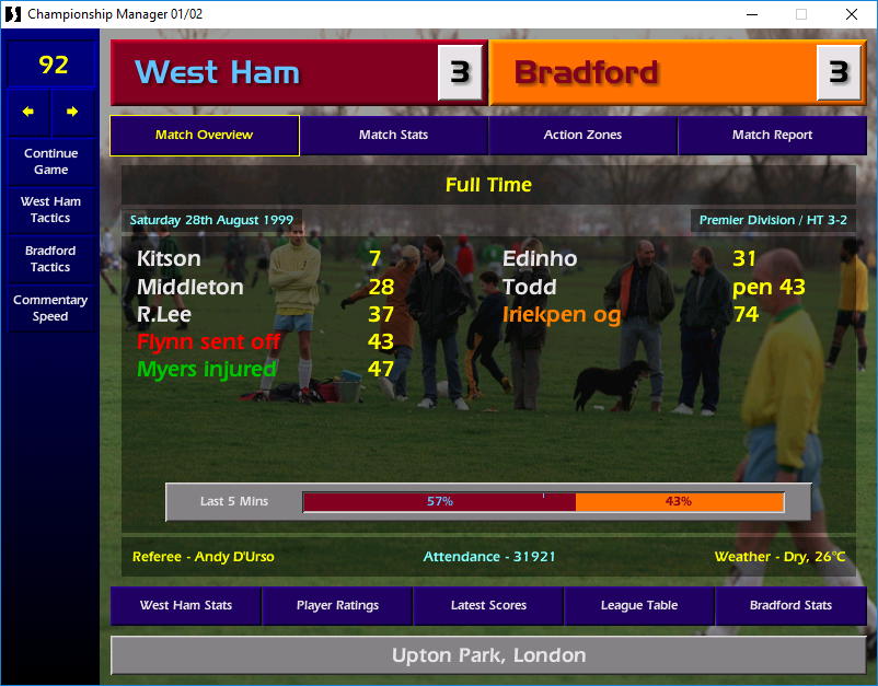 That’s still not it though, as in the last minute Peter Atherton hits the post. It ends 3-3, and will go down as a classic game.