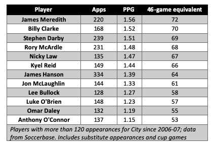 Of course, there have been City players with much worse win ratios than O’Connor, but typically they have quickly departed after a season or two. O’Connor has been here a relatively long time, and results that have included him in the team have largely not being great.
