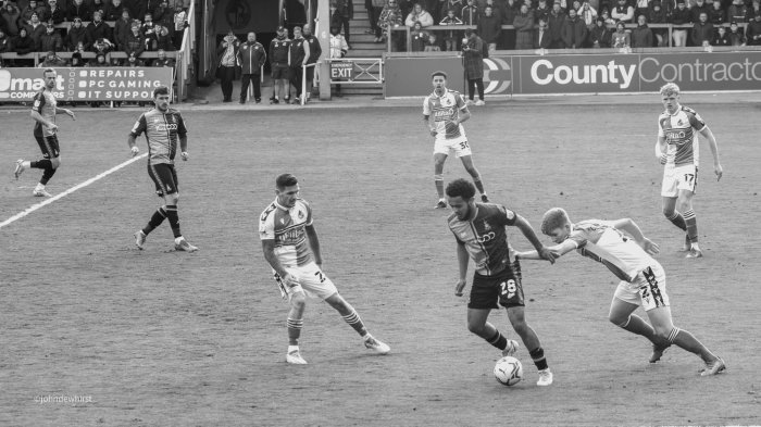 But as harsh as 0-0 was on the home side at the break, the most unlikely, yet most predictable occurrence in the game came 20 seconds after the restart. Matty Foulds’ hook into the box was knocked down by Cook into the path of Dion Pereira. The on-loan Luton attacker showed great composure to jink inside Trevor Clarke and finish calmly past James Belshaw in the Rovers goal.