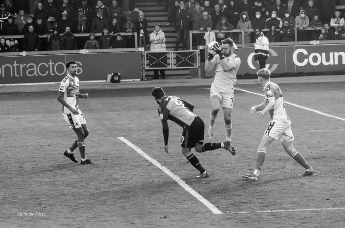 Nicholson was twice thwarted by two good saves from Alex Bass before the hosts were level, twelve minutes after falling behind. A short corner found its way out to Finley who let fly from 30 yards. His sweet strike thumped into the back of the net to bring the tie level. It was a strong strike, but the fact that it hit the net in almost the centre of the goal, leaves you questioning Bass’ contribution.
