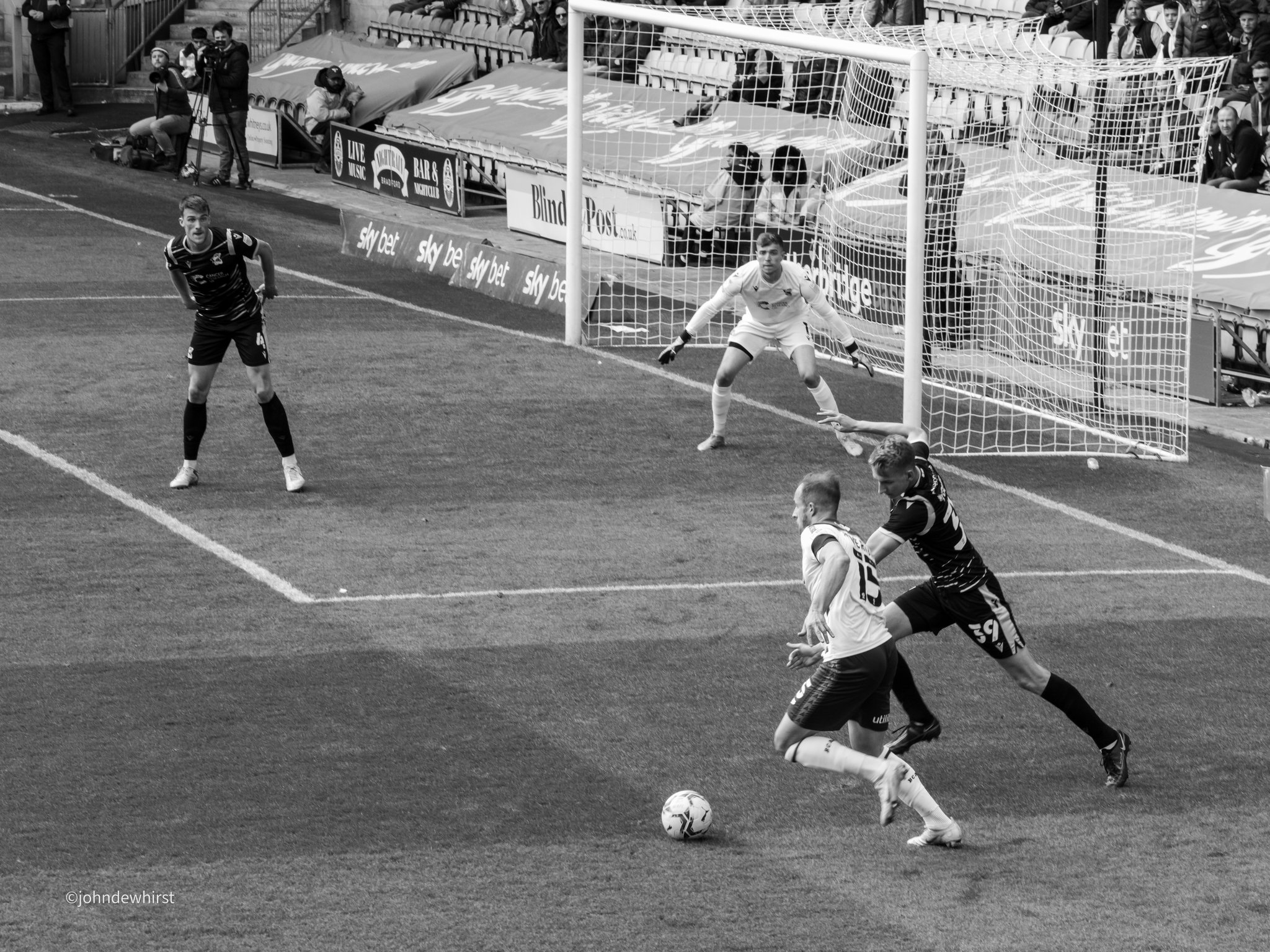 The closeness of the scoreline began to feel more significant as more and more City chances went begging. Vernam could easily have had a hat trick, at one stage hitting the woodwork with the ball bouncing down on the goal line. Lee Angol – who had a brilliant game in his first start since February – saw a couple of efforts well saved by Watson.