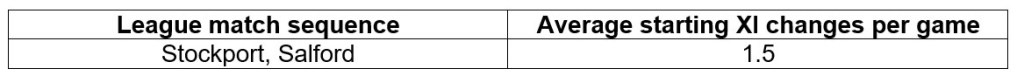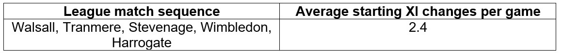 Nevertheless, the next sequence of league matches saw an increase in starting XI changes.