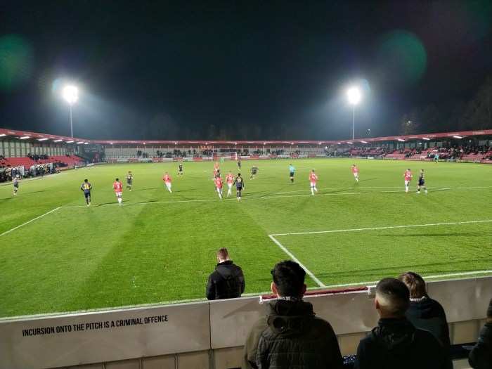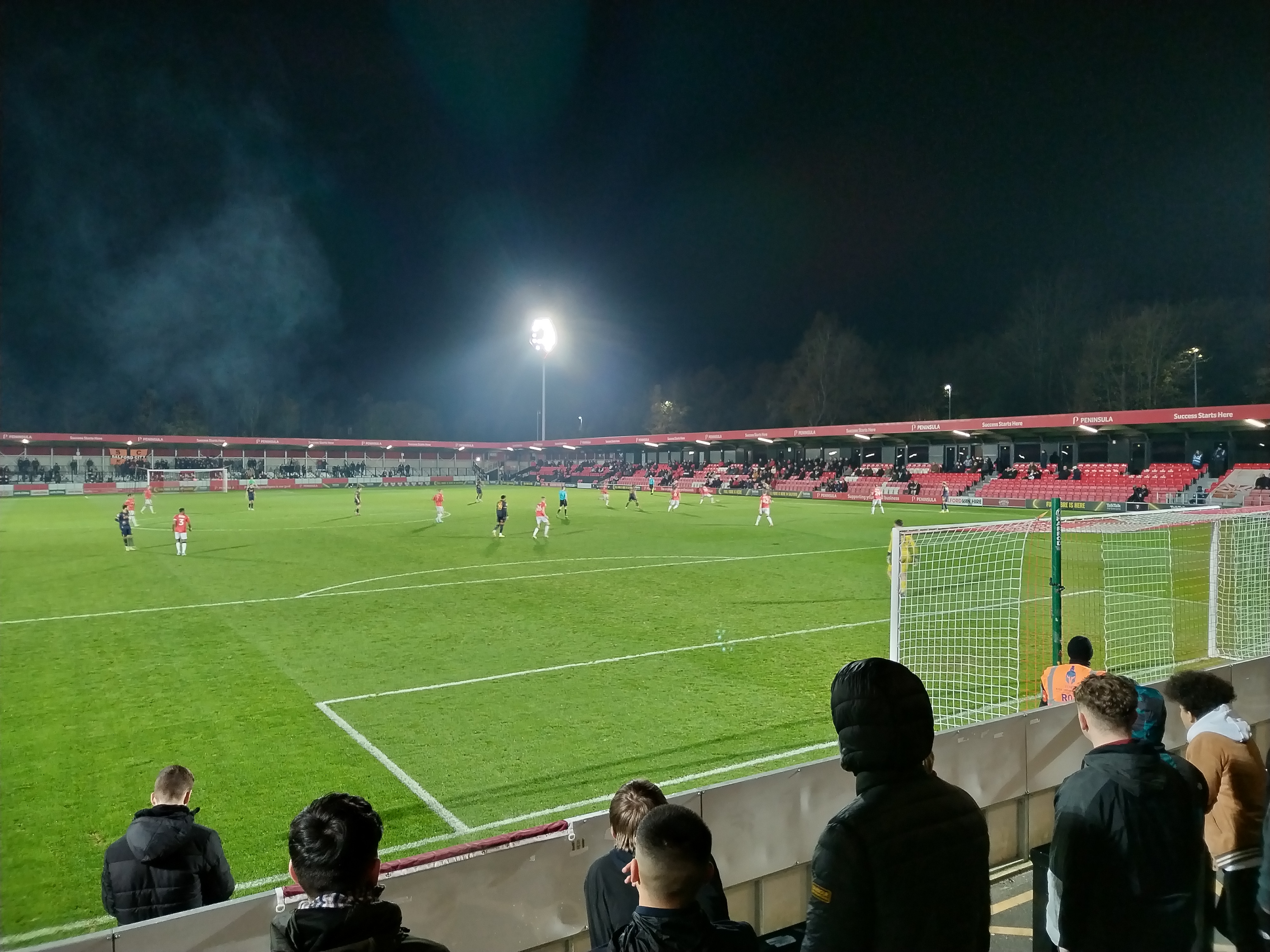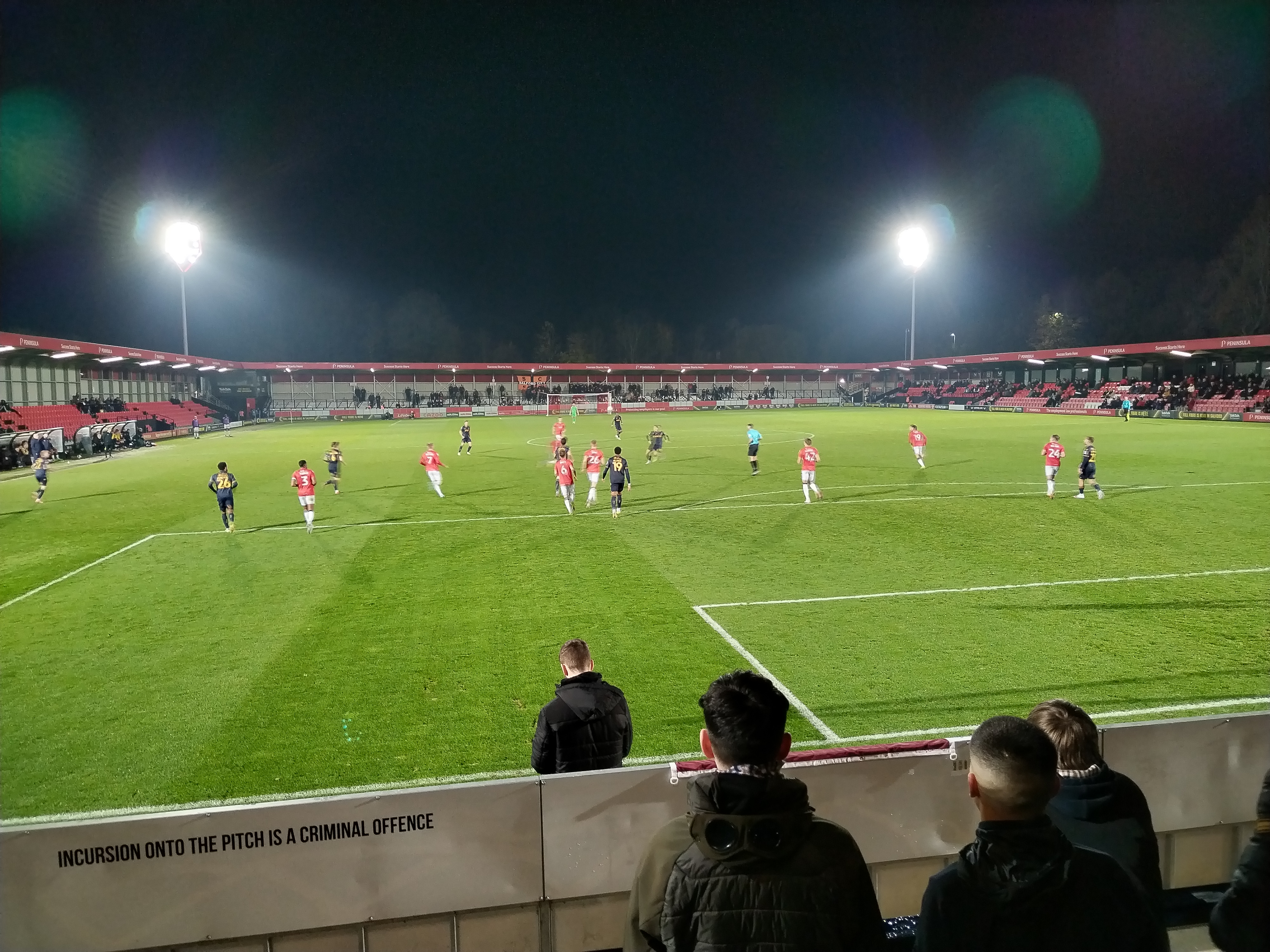 10 minutes before half time, Lorent Tolaj got free and struck a powerful effort into the far corner to put Salford ahead. Given his incredibly high standards since joining the club, Harry Lewis might reflect that he could have done a little better to keep it out. That’s probably harsh, and my viewpoint – stood behind the goal – perhaps wasn’t the clearest. It certainly wasn’t a goalkeeping error.