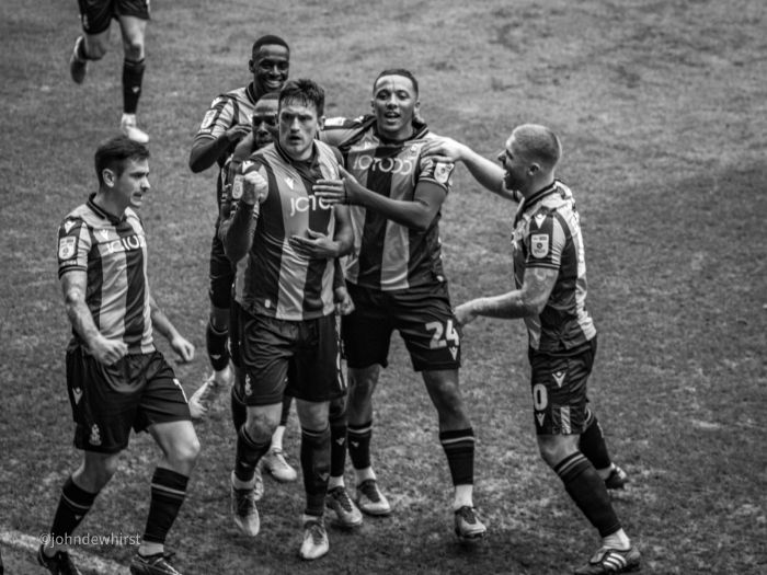 Such desperation would be rewarded in the nick of time when defender Alfie Kilgour was somehow left unmarked at the far post to head in a Mansfield equaliser. If the wild celebrations that ensued seemed over the top, they were a euphoric response to the adverse situation the Stags had clawed themselves out of. A proud Clough would remark after that he’d never experienced such a first half situation in his 25 years of being a manager. He considered his side’s performance here to have been better than their eye-catching 4-1 home win over Doncaster the week before.