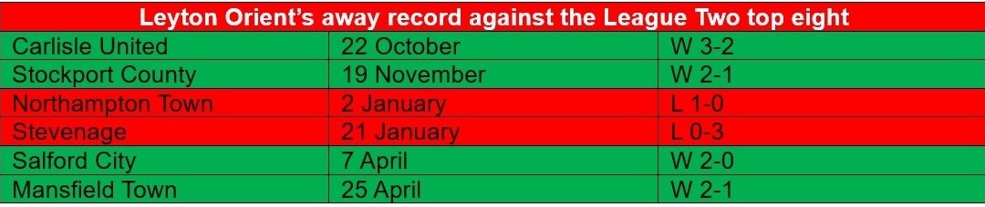 – You’ve said before that Leyton Orient did a lot of their heavy lifting at the start of the season. Both them and us lost our last game. And both won the one before that. And in fact over the last 5-6 games, we have almost identical form.