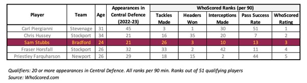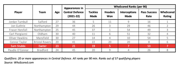 That eye test was backed up statistically too, with Stubbs immediately establishing himself amongst the leading defenders in League Two.
