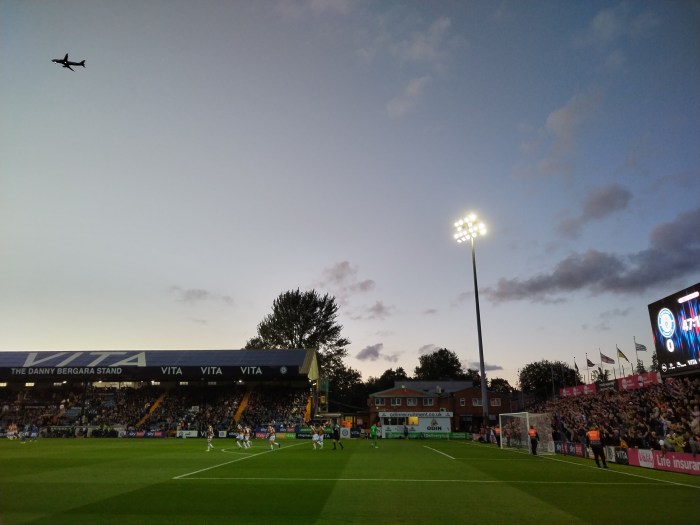 For some 30 minutes, Stockport knocked and knocked on the door. The Cheadle End got louder and louder. Some great chances were spurned, several corners were racked up. The pressure didn’t go away, and a side in a difficult place ultimately came together on the field and in the stands to recover. Isaac Olaofe got the equaliser from a rebound, after Harry Lewis made a very good initial save.