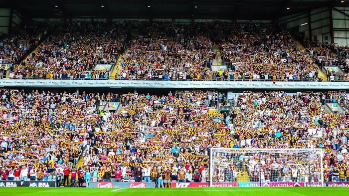Valley Parade is old, worn out and needs some maintenance. But its 25,000 capacity is ideal for the club’s long-term potential. And although the lack of facilities near the ground is a frustration for many supporters, Valley Parade’s close proximity to the city centre and train station make it a decent location.