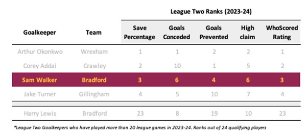 Sam Walker was the central part of that. From the moment he arrived, he was one of the best goalkeepers in the division.