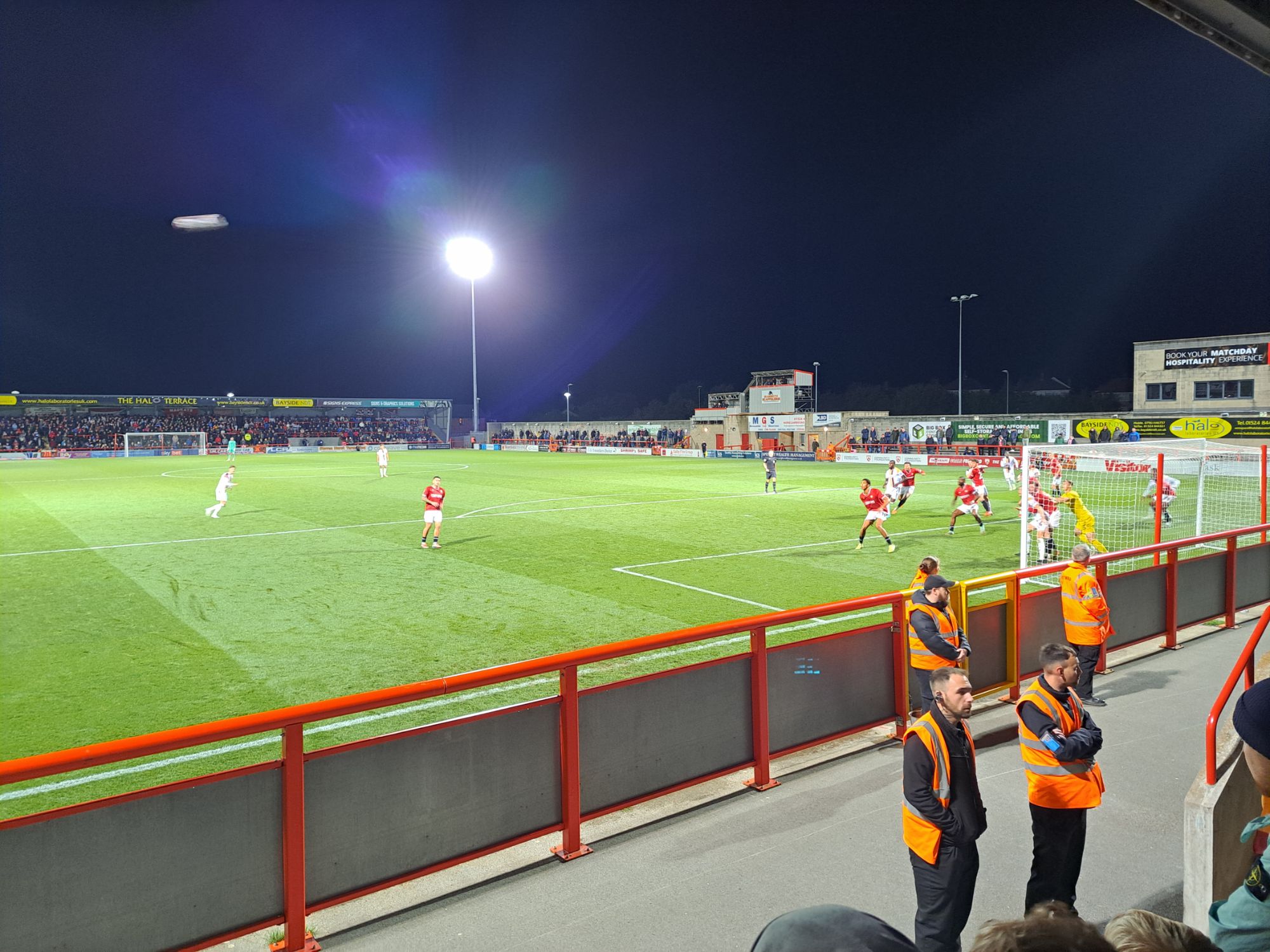 With Oduor having joy getting through Morecambe’s sturdy set up, the dynamic of the game began to slowly shift. It’s been a long time since Morecambe had won a game of football, and doubts understandably began to creep in. Sam Walker had produced two superb second half saves to keep it a nervy 1-0 scoreline. As the minutes ticked by, you could see their players become more edgy, their shape begin to buckle, and their decision-making worsen.