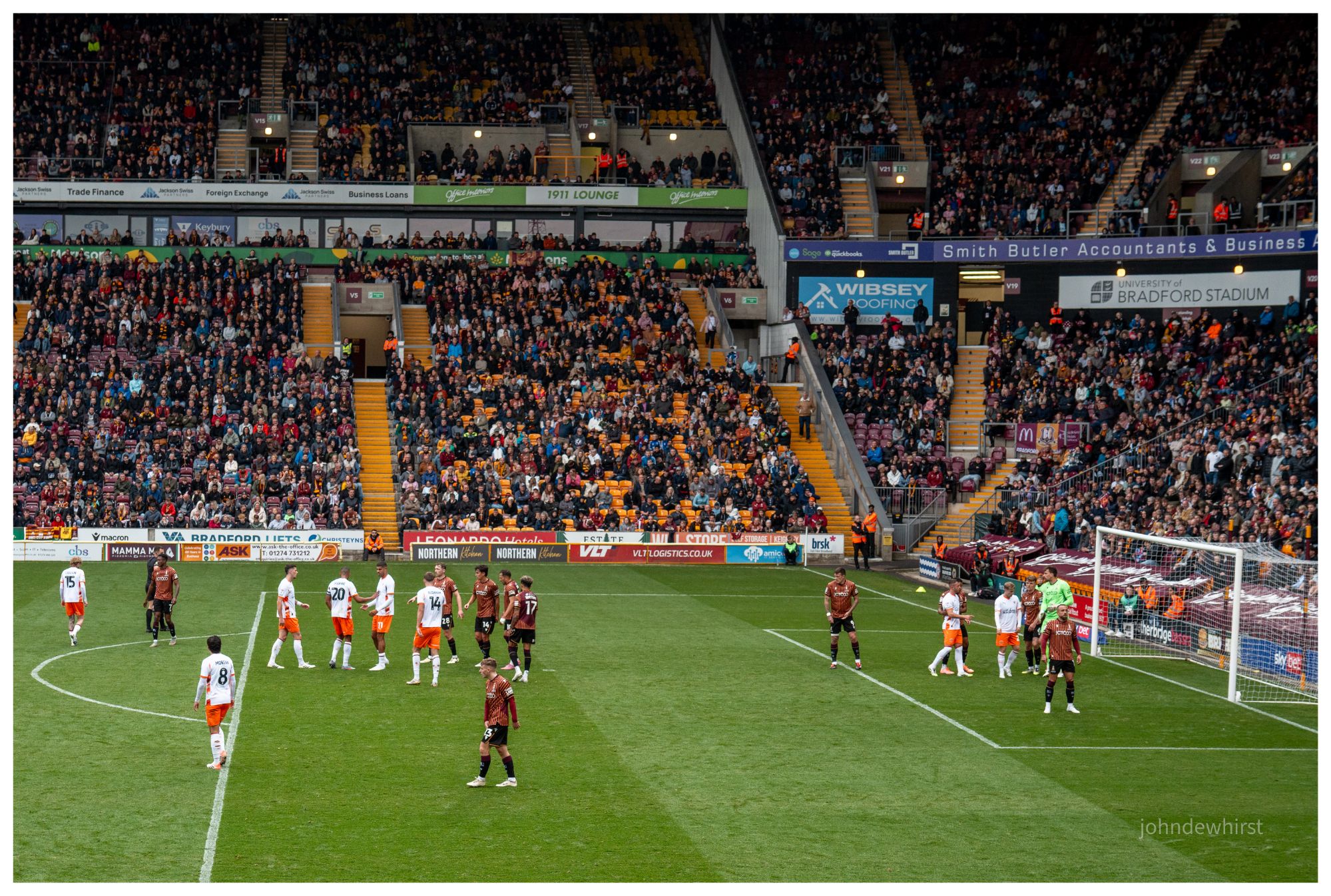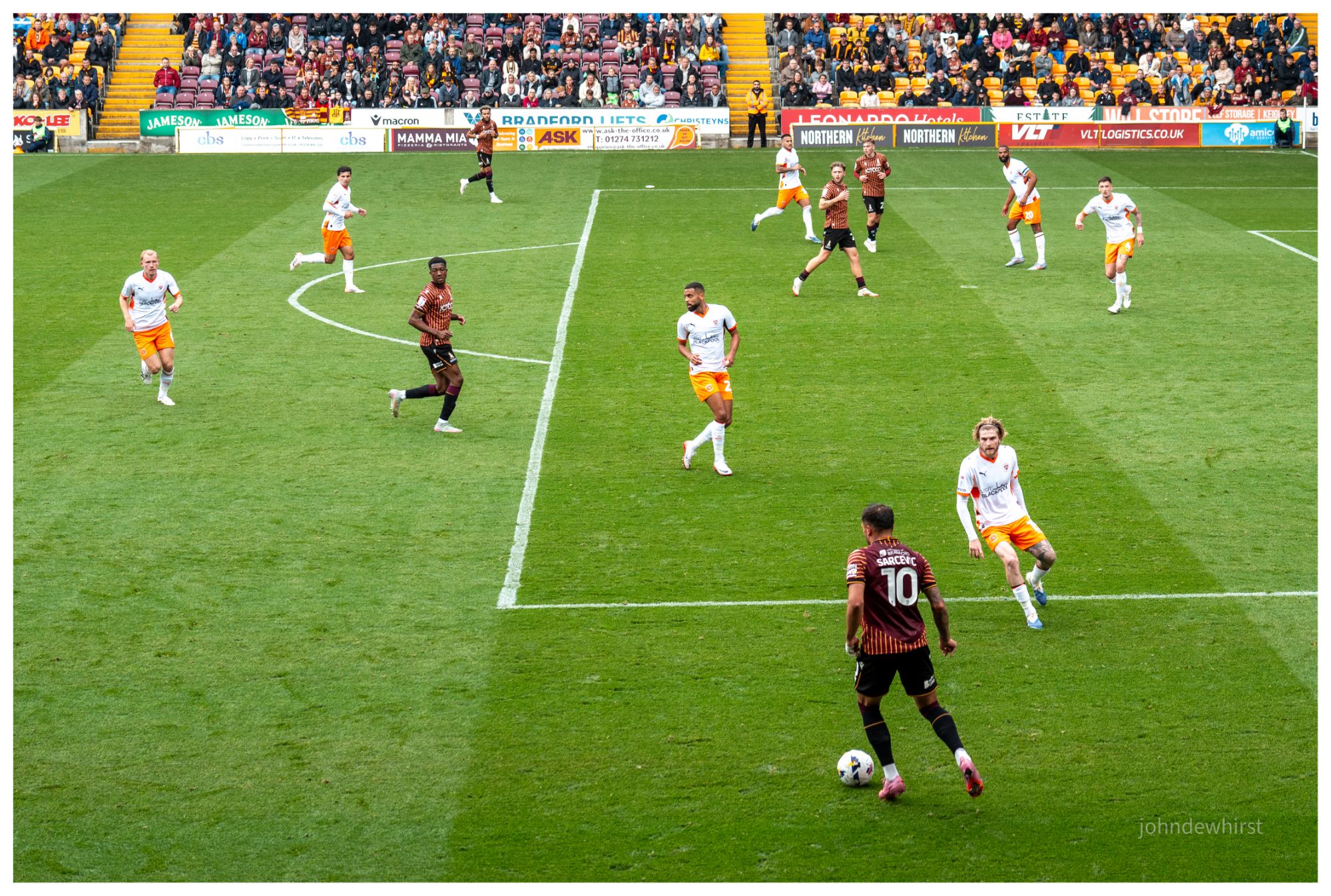 Indeed Neufville’s goal – coming six minutes after half time – proved the turning point of what felt like a game of two halves. The first half of it – Before Neufville (or B.N.) – posed a real tactical challenge to the Bantams. Lining up 4-4-2, Blackpool were the type of opponents City so often struggle to master at home. They didn’t exactly park the bus, but kept men behind the ball and squeezed City’s forward players of any space to operate.