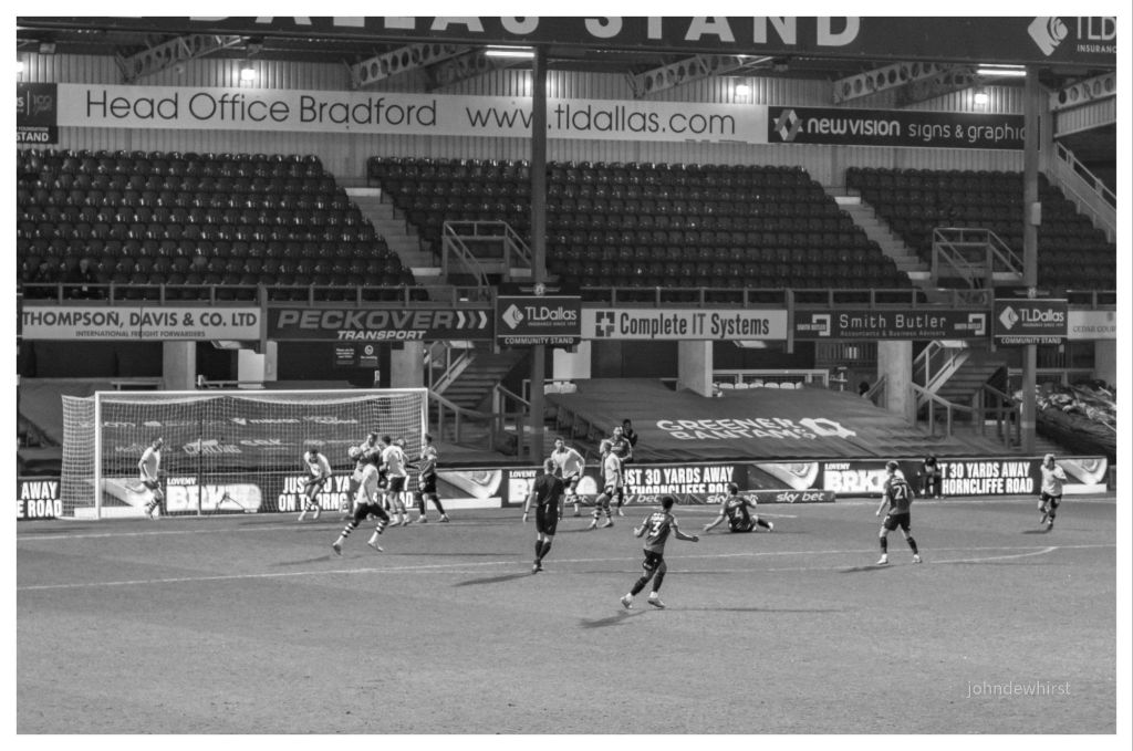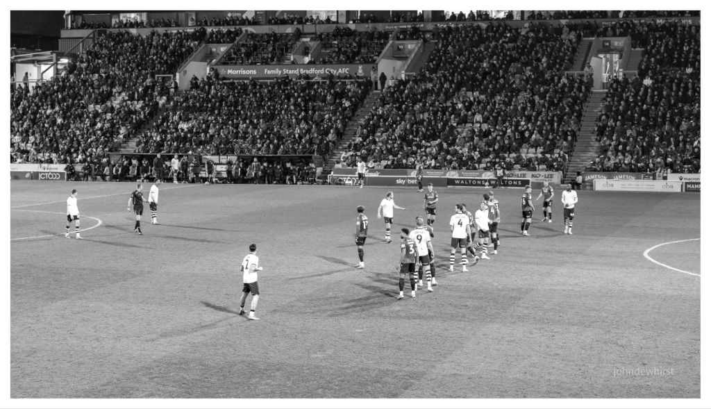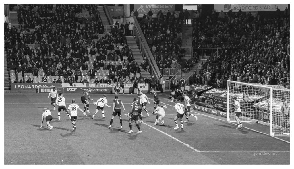The Bantams have the best of the tentative early exchanges, as Port Vale bolster a wall of five across the back, three in a midfield, and Devante Cole and Jayden Stockley up front. Stockley’s angular approach to heading seemed to continue from the Nine Man Wigan Athletic school of ball winning, while former Bantam Cole remains a player whose talent is dwarfed by his capacity to be discouraged by minor setbacks.